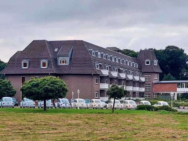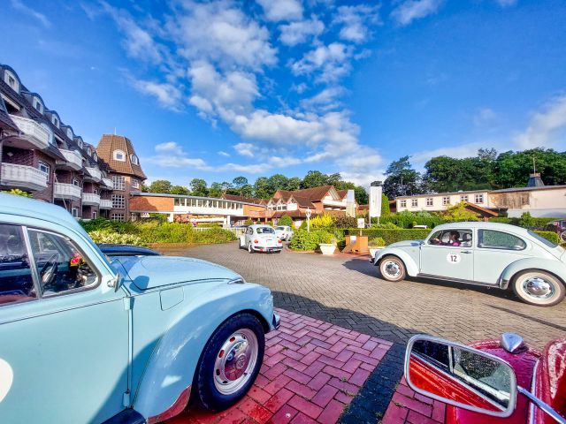 We had chosen the Upstalsboom Landhotel Friesland**** in Varel-Dangast for our meeting. The "Blue Salon" was reserved exclusively for the VW Beetle Club Última Edición e.V.; breakfast and dinner were served there. A terrace in front was available for the welcome reception, which was ideal for our Beetle meeting. The parking spaces for the Beetles were reserved according to the allocated start numbers. We drove a total of 282 kilometres.