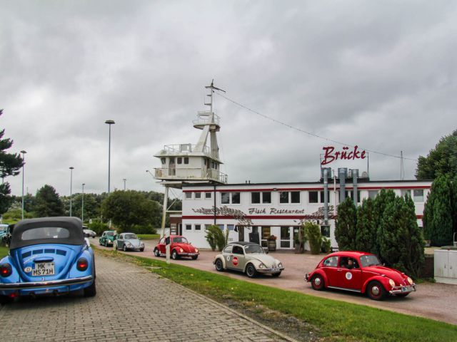 The Beetles then parked in the grounds of Restaurant Brücke. It was time for a walk along the dike and the North Sea beach, before enjoying a unique lunch at Restaurant Brücke: Neptune's delicacies in the unique flair of the maritime Restaurant Brücke from the "Altonaer Räucherofen" - without gas! The seafood is prepared according to the restaurant's own recipes with selected spices and marinades. Smoking with alder wood gives the fish a golden colour and a particularly delicate flavour, which we couldn't resist.