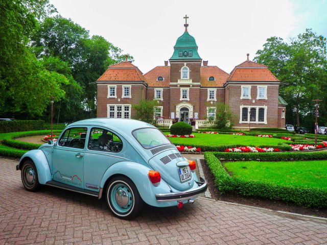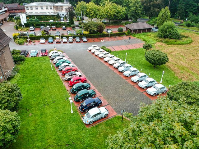We had chosen the Upstalsboom Landhotel Friesland**** in Varel-Dangast for our meeting. The "Blue Salon" was reserved exclusively for the VW Beetle Club Última Edición e.V.; breakfast and dinner were served there. A terrace in front was available for the welcome reception, which was ideal for our Beetle meeting. The parking spaces for the Beetles were reserved according to the allocated start numbers. We drove a total of 282 kilometres.